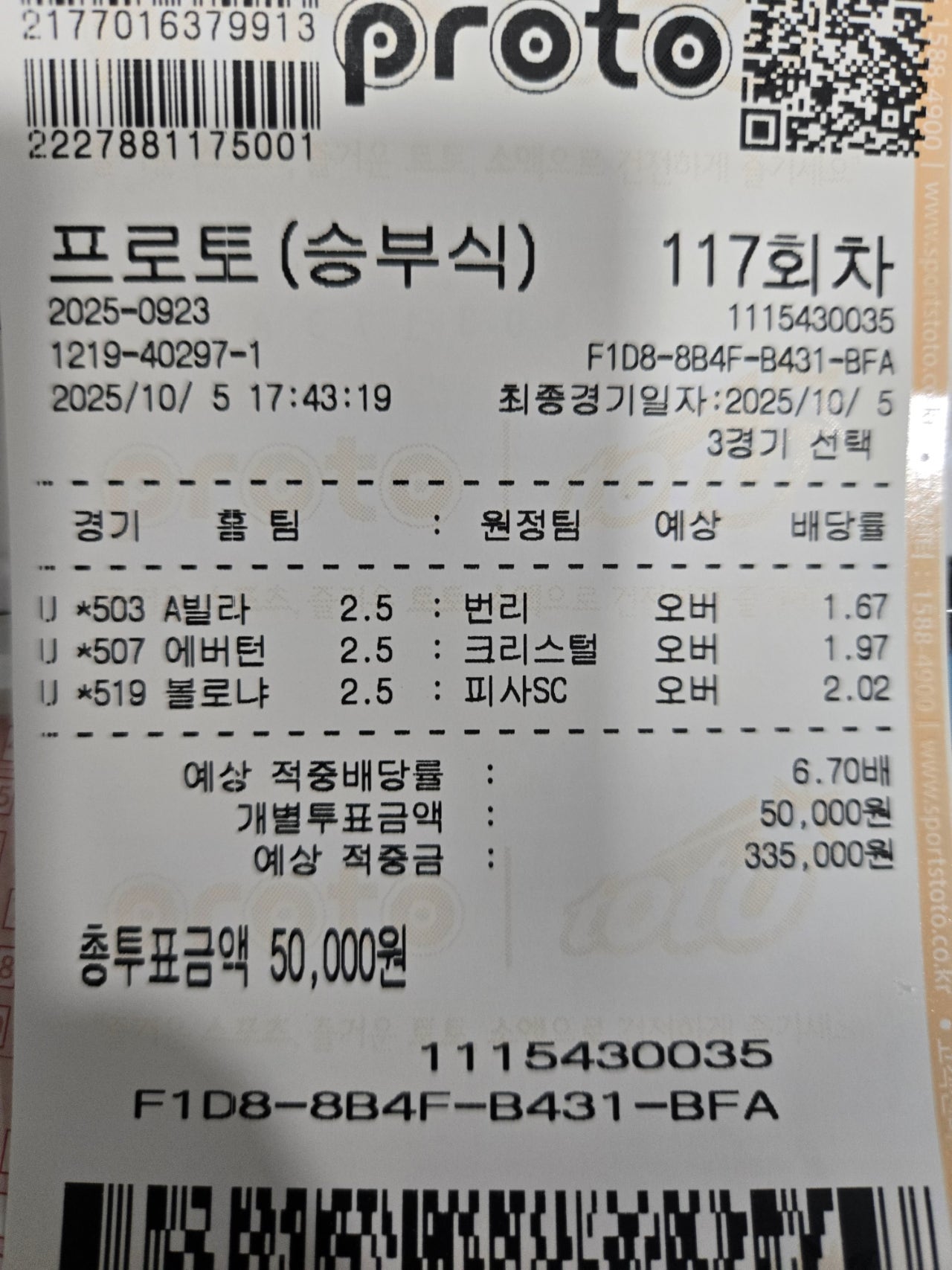 오늘 3오버 한장 적중입니다.