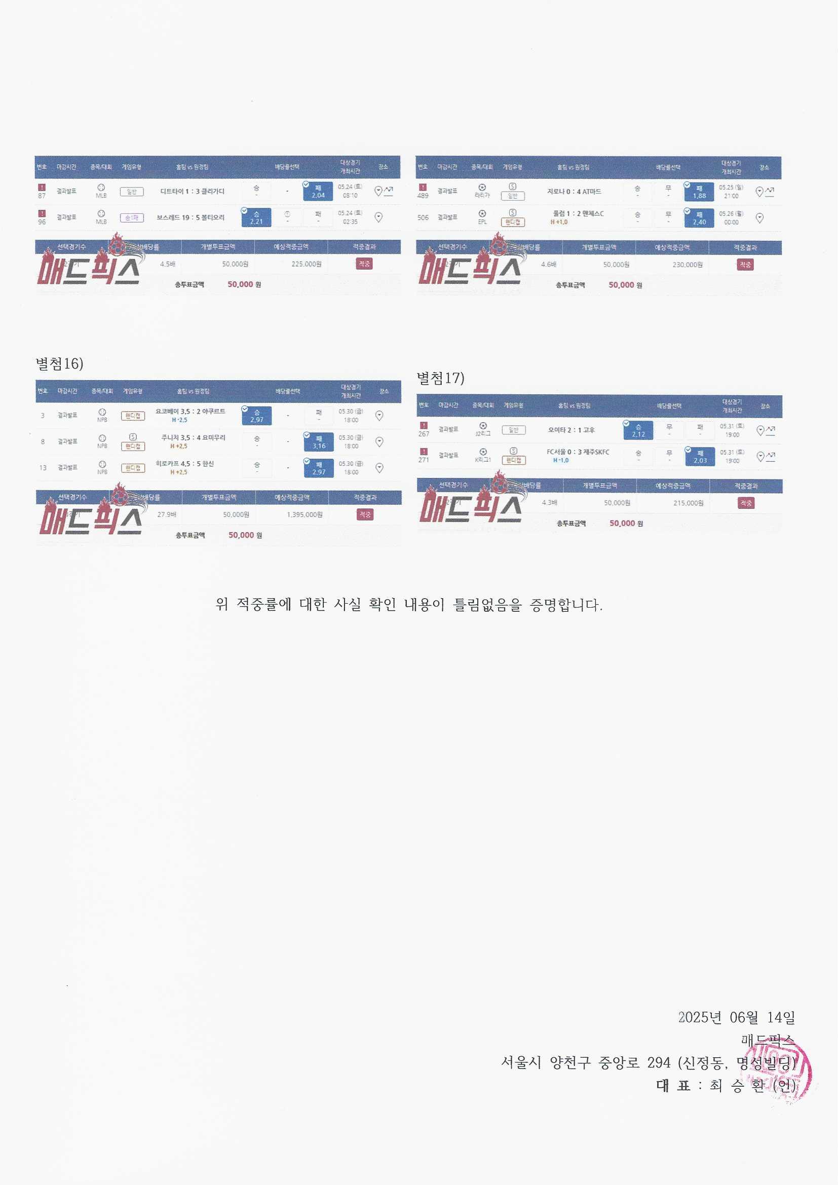 (VIP) 2025년 06월 적중 사실 확인 공문인증서
