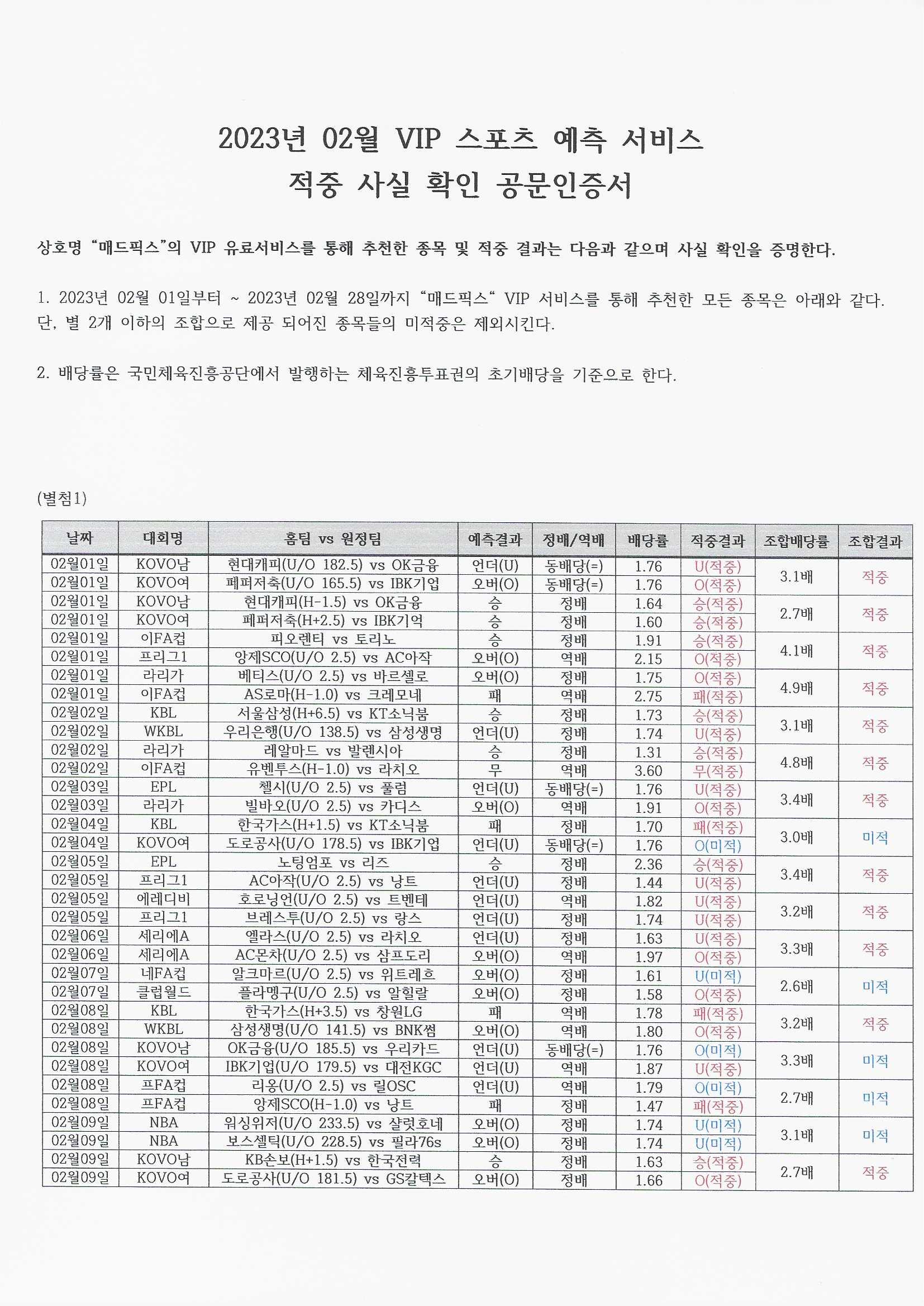 (VVIP) 2023년 02월 고배당 적중 공문 인증서