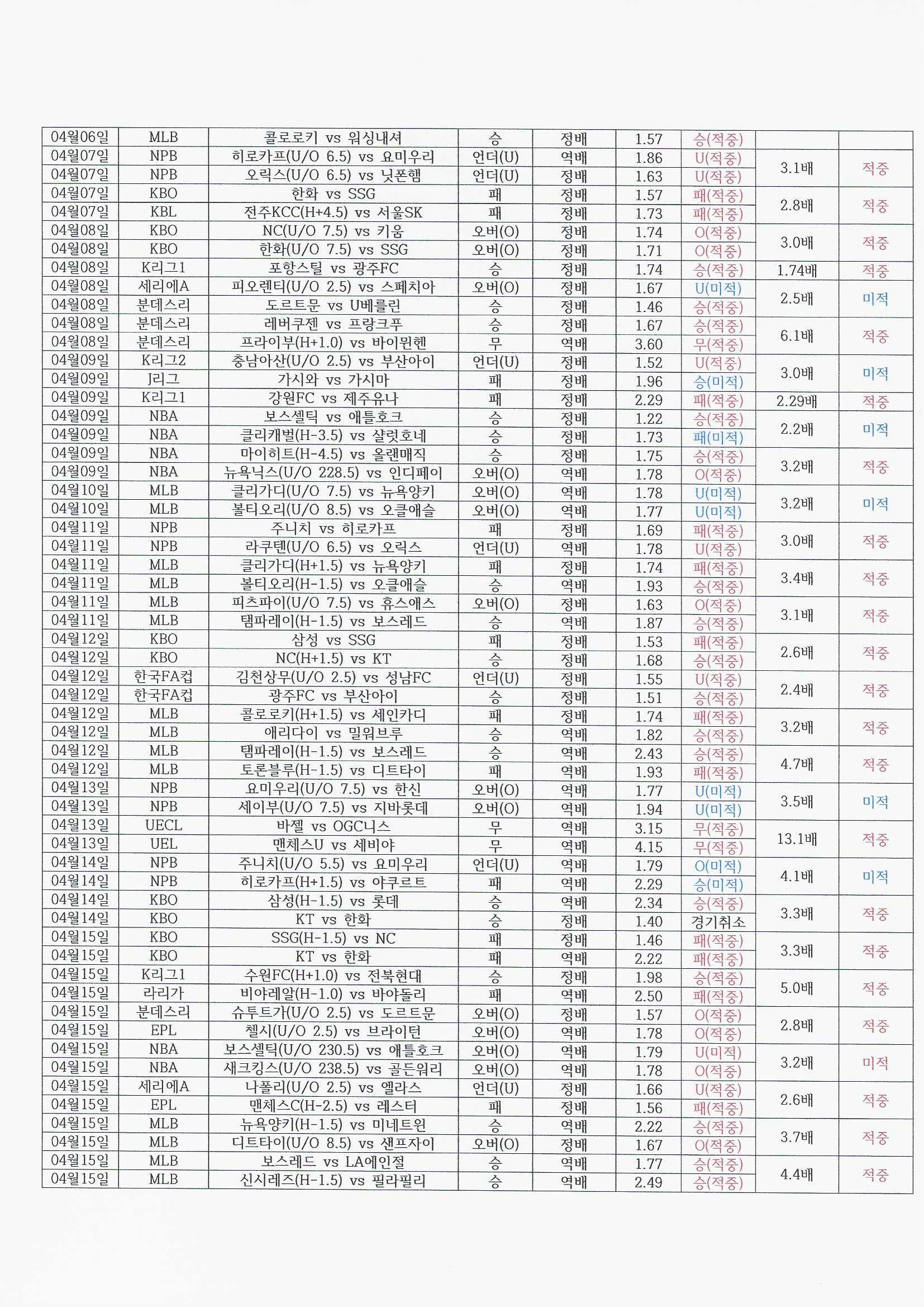 적중결과